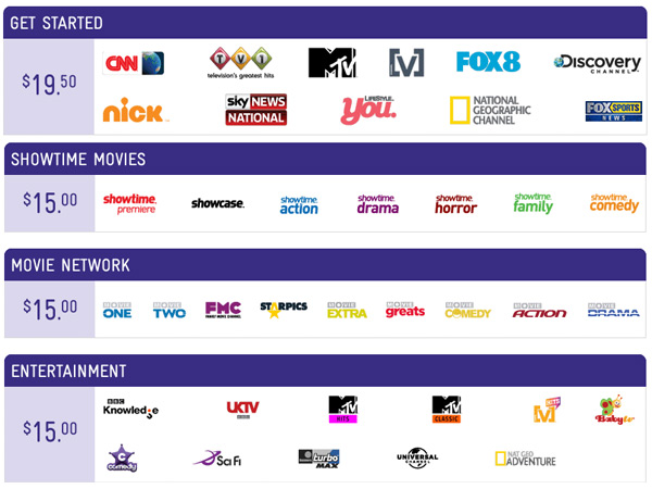 The Foxtel channel packages available on T-Box (minus the sports pack).