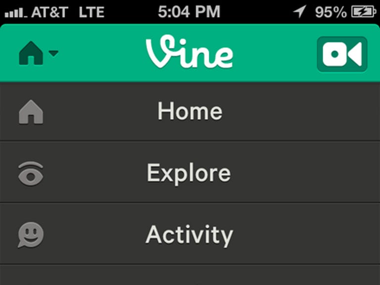 To get started with Vine, you can sign up with an e-mail and password directly with Vine or you can use your Twitter account for quick access. Once signed in, you'll see the Home feed that shows the latest videos from other users. A button in the upper-left corner lets you navigate among the home screen, a place to explore videos from other users, a personal activity section to view videos you've made, and a link to your profile. I recommend going to the profile screen right away to fill out your information and also to use the button in the upper right to search for other Vine users you know from your address book, Twitter, Facebook, or a direct search. With a few friends selected, the home screen will now show videos from your friends and other contacts.