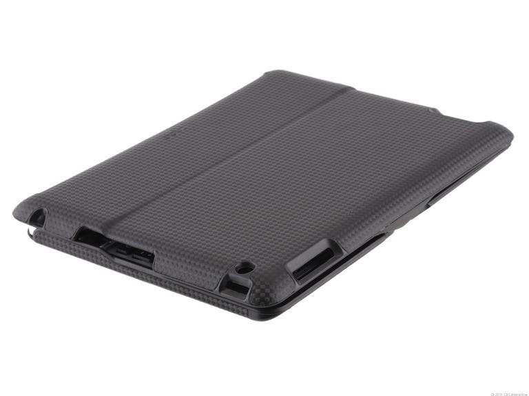 Though the keyboard's a hit, we're a little less bullish about the folio case part. The outside is sheathed in a "carbon fiber textured" material that feels like soft patterned nylon. The hard case slots an iPad 2 into its top half and bends backward so the iPad 2 remains perfectly slotted in while typing, but flipped into a "normal" case mode the Zaggfolio feels bulky and floppy, and not at all ideal for reading. An embedded magnet awakens an iPad 2 for instant-on use, but we found this less necessary on a keyboard case that probably requires Bluetooth management between uses anyway. The Zaggfolio's thickness is similar to a thin-and-light laptop, and a plastic front snap keeps the case closed for the most part. Padded bumpers on the keyboard protect against content with the iPad's glass screen when folded up, but we still wouldn't trust this type of overall case compared with a true folio alternative.