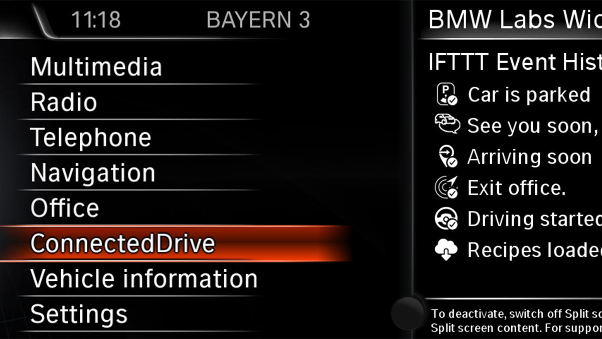 BMW is the first carmaker to offer IFTTT services, which allows users to do things such as automatically open home garage doors as they pull their car up in the driveway, or send a message to a spouse when picking up the kids from school. For the situations above, the car pulling up into the driveway or picking up the kids from school serve as the triggers that respectively cause the garage door to open or a message to go out to a spouse as part of a IFTTT formula set up by the user.