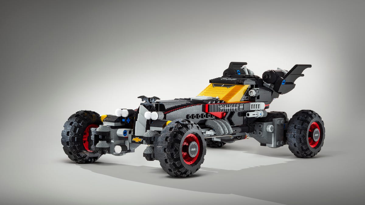 Modeled after 's Speedwagon from the "The Lego Batman Movie," the 17-foot long Lego Batmobile from Chevrolet features intimidating looks sure to strike fear in the bad guys, and stud shooters ideal for Batman to make his rounds of Gotham City in.