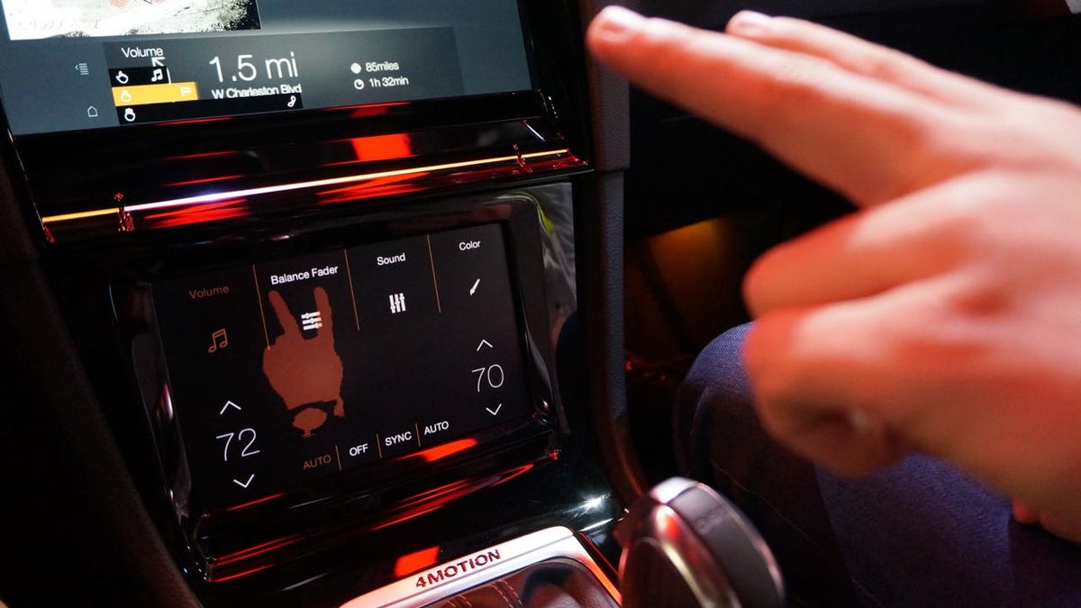 Even when using the touch screen, gestures play a role. For example, swiping a capacitive bar with one finger changes the volume. Swiping with two changes the color scheme and using three fingers adjusts a different option. The system looks fantastic, but some may find it a bit too busy for the road. With a simple pitching gesture, the interface can be minimized to reduce distraction.