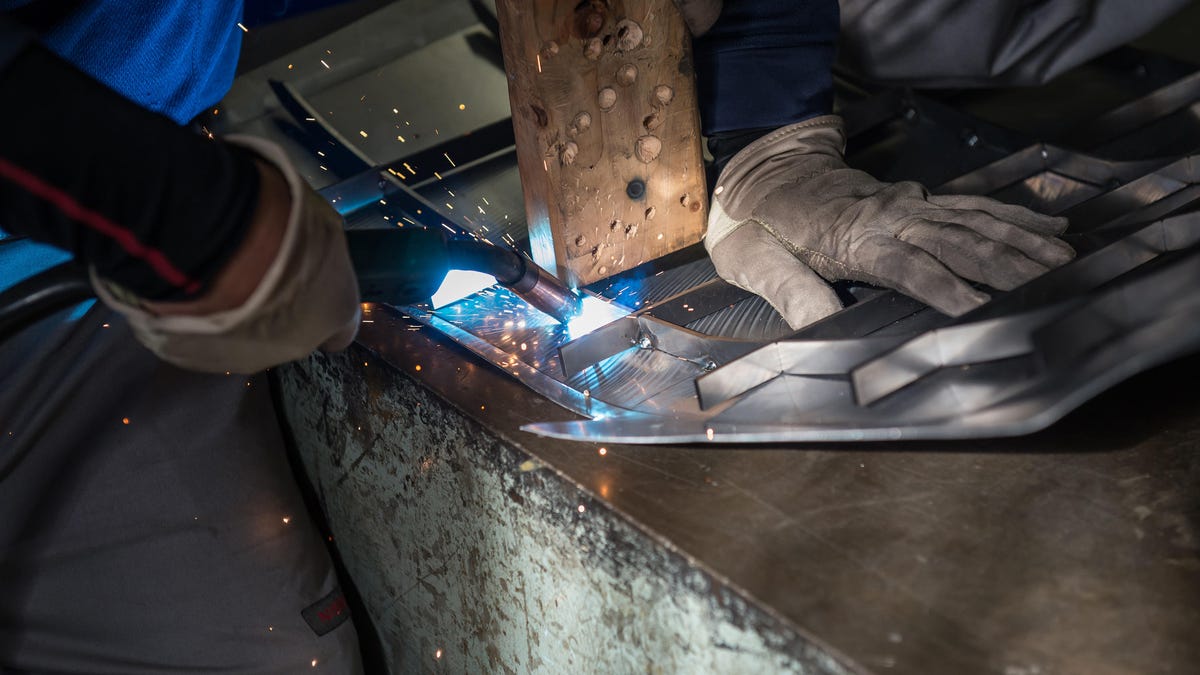 Underneath the steel body panels and steel ladder frame lies the powertrain from a "next-generation EV" that's probably the 2018 Nissan Leaf. Its single electric motor is bolted to the rear wheels via a single-speed transmission, and it puts out 148 horsepower and 236 pound-feet of torque. It'll hit 60 mph in 5.5 seconds and should last about 20 minutes on the track with a heavy right foot.