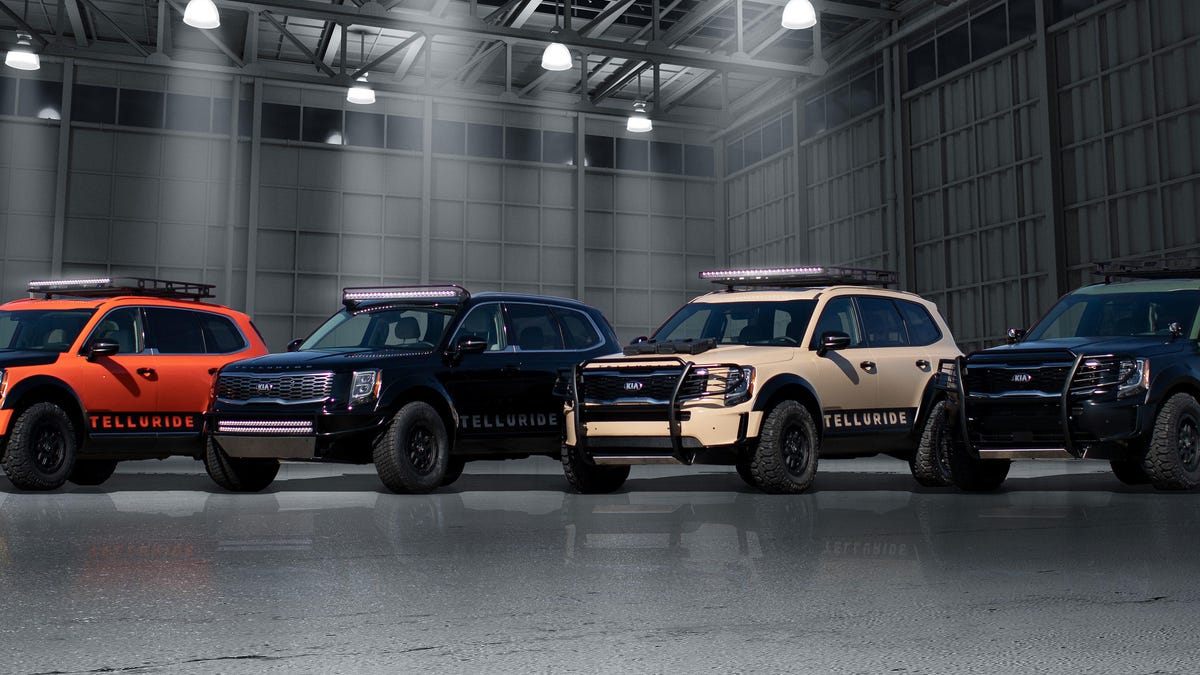 The Kia Telluride was last shown amidst the glitz and glamor of New York Fashion Week, but the automaker clearly wants to emphasize the upcoming model's ruggedness, too. Kia said in a press release today it will bring four modified Telluride concepts to SEMA and let attendees ride in them on a "Torque Track" off-road course set up outside the Las Vegas Convention Center.