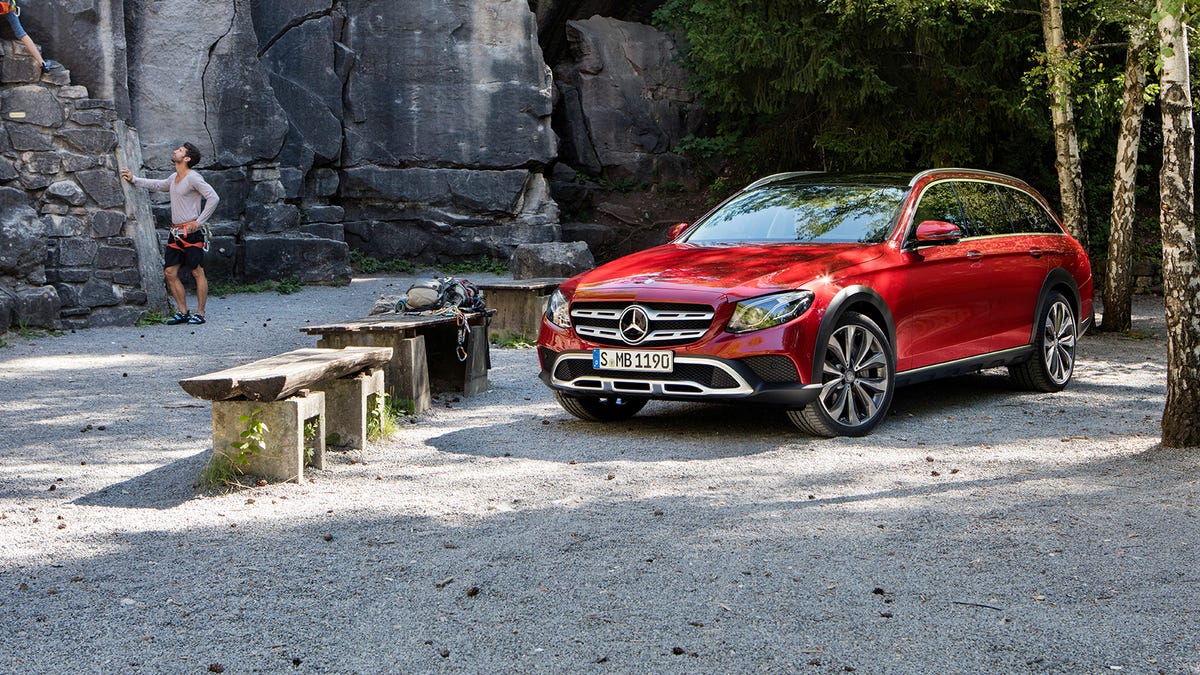 At first glance, not much is different from the E-Class Estate (that's European for "station wagon"). It rides taller on its air suspension, which can be set to three different ride heights, and there is some additional body cladding to give it a little bit of that off-road flavor. The tires have taller sidewalls, as well, to bolster dirt-driving cred.
