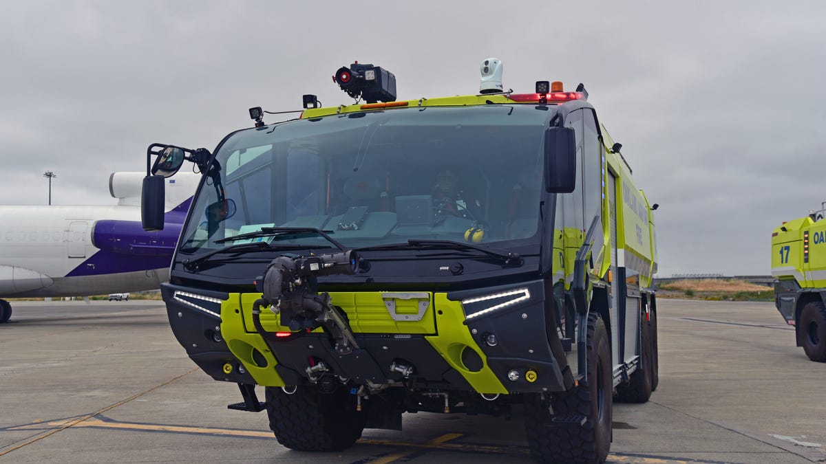 Firefighters from the Oakland Fire Department can operate the booms from the vehicle's cab, though they'll use a standard fire hose if they have to enter a burning aircraft. Fully loaded, the 43-ton vehicles hold 3,170 gallons of water and 422 gallons of foam. A 750-horsepower engines lets them speed across the runway and apron to wherever they needed.