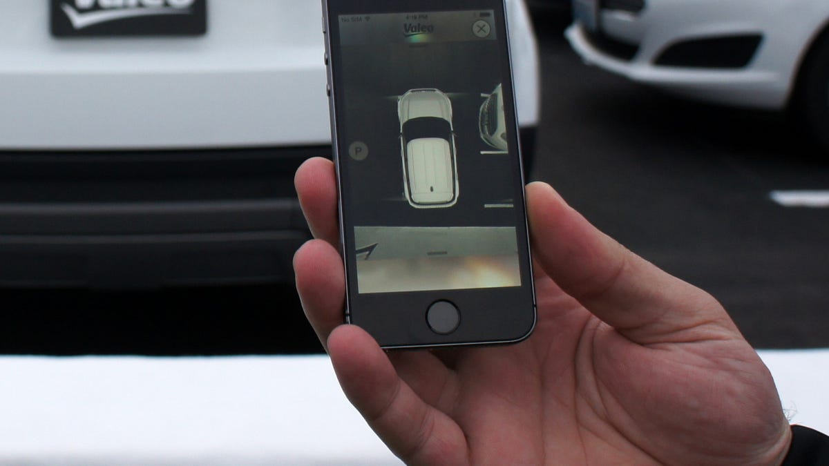 The smartphone app was a convenient way for a driver to initiate the system, although Valeo could also build the control system into a key fob. For the demonstration, Valeo had the phone communicate with the car over Wi-Fi, although any communication protocol would work.