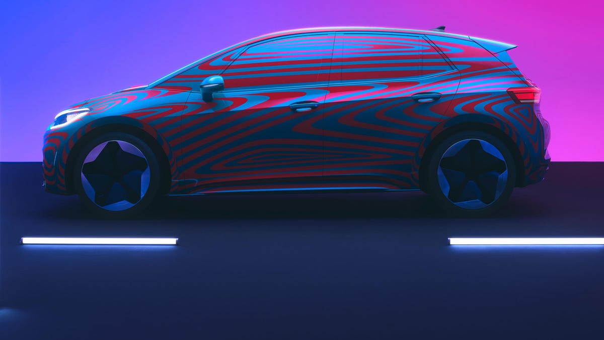 While VW didn't give away the whole show, the automaker did offer up a few key details about what to expect. It will have three battery options: The short-range battery offers about 205 miles by WLTP measurements, with a midrange battery delivering about 261 miles, while the long-range battery extends that to about 342 miles. The lowest-range model is believed to start under 30,000 euros (about $33,600) in Germany, less any local incentives.