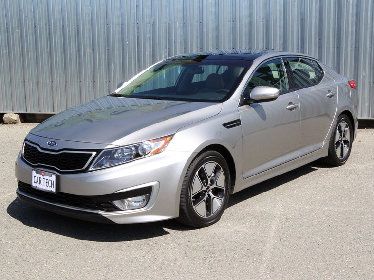 The Optima pairs an Atkinson-cycle gasoline engine with an electric motor and lithium polymer battery pack.