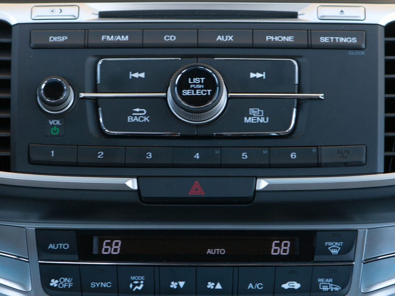 The six-speaker audio system in the Accord EX comes off as pretty average, and there is no upgrade available. Listening to the Beastie Boys' "Ill Communication," the system showed off some good stereo separation and good treble response. However, the bass and vocals sounded muddy. Turning the volume up to the three-quarter mark led to distortion.