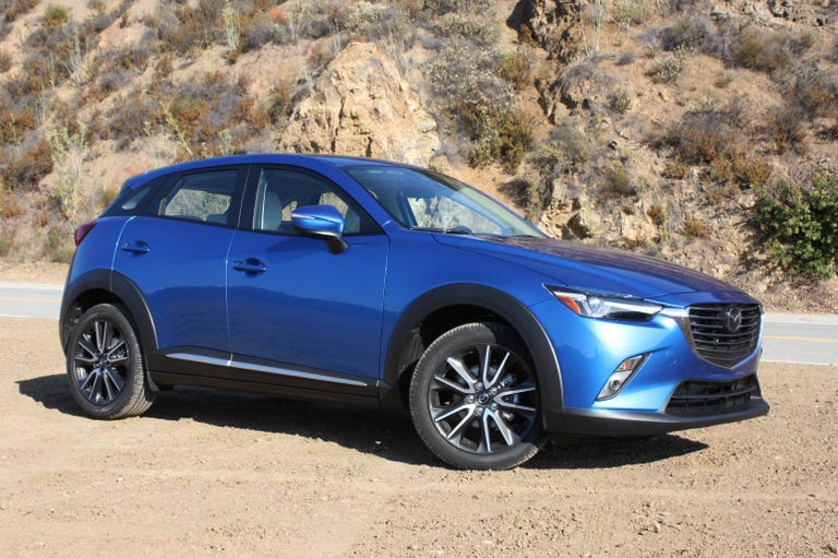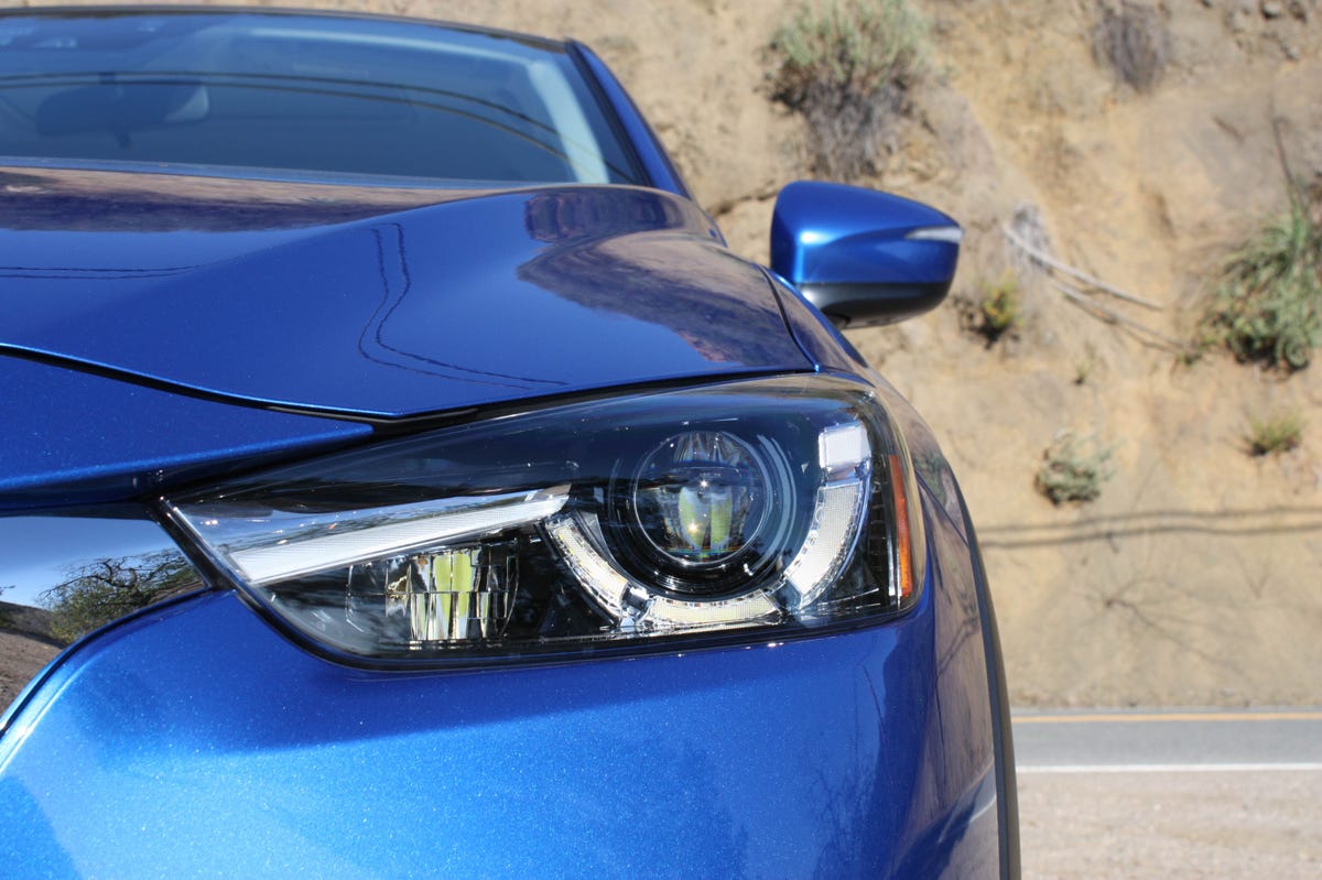 Minor shortfalls aside, Mazda's tech focus extends to other areas of the CX-3 as well. This cute ute can be had with cornering LED headlamps with auto high-beam control, radar-based cruise control, rain-sensing wipers, and lane-departure warning, most of which are unusual features at this price point. A word about the lane-departure system -- it relies solely on beeping or a simulated "rumble strip" noise pumped through the audio system's speakers to warn of your transgressions. Haptic feedback through the wheel or seat would be less intrusive for the rest of the vehicle's occupants yet more noticeable to the driver.