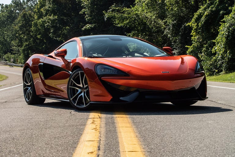 Behind the lights is a twin-turbocharged 3.8-liter V8 engine familiar from other McLarens. Rated for 562 horsepower and 443 pound-feet of torque, it drives the rear wheels by way of a seven-speed dual-clutch transmission. The claimed numbers: 0 to 60 miles per hour in 3.3 seconds, top speed of 204 mph, quarter-mile in 11.1 seconds.