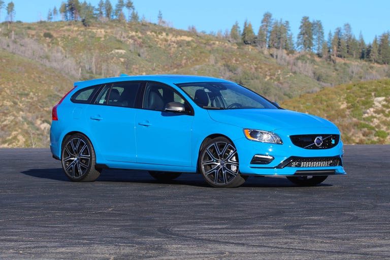 Volvo's lineup is almost entirely new, which makes the aging S60 and V60 stand out like a sore thumb. There are no sleek "Thor's Hammer" LED headlights up front, nor does the wagon's body appear as svelte as Volvo's newest wagon, the V90. But it's not a bad design by any stretch -- the proportions work, which is part of the reason why this body has been around since 2011 with only a few aesthetic adjustments. Slap on a coat of Polestar's exclusive cyan racing blue paint and it still looks plenty frisky, especially with some 20-inch wheels jammed into the wells and a front lip that looks ready to take out an ankle or two.