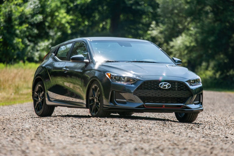 Hyundai's engineers have tuned a just-right chassis for the Turbo, with well-damped body motions and well-controlled roll. To reduce understeer, the stability control automatically squeezes the car's inside brakes during tight bends. Though there's no limited-slip differential to keep the engine's torque in check, Michelin Pilot Sport 4 tires provide more than enough grip for street driving in every direction. One caveat is that the sticky rubber comes only on manual-transmission Turbos. Equip the optional seven-speed dual-clutch transmission and you instead get all-season tires, which is yet another reason to pick the stick.