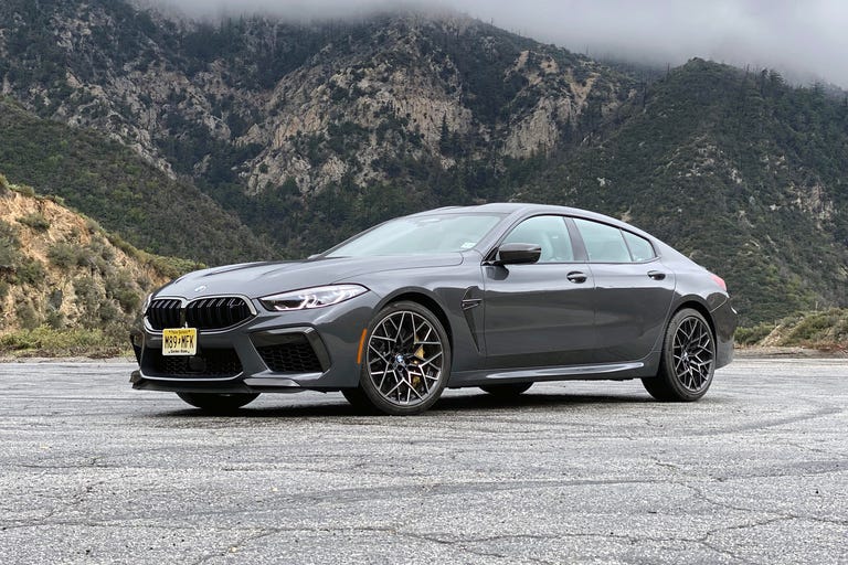 The car you see here is the M8 Competition Gran Coupe, which means its 4.4-liter twin-turbo V8 is tuned to produce 617 horsepower and 553 pound-feet of torque. That gives it a 17-hp advantage over a standard M8, which is enough to shave one-tenth of a second off the sedan's 0-to-60-mph time (3.0 seconds versus 3.1). That's fine for bragging rights, I guess, but means next to nothing in the real world.