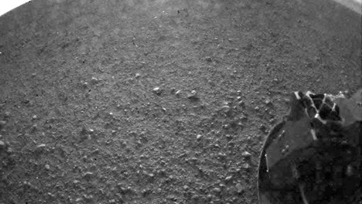 While engineers did not expect pictures right away, blurry low-resolution thumbnails from the rover's rear hazard avoidance cameras were transmitted within minutes of touchdown showing a wheel on the surface of Mars.