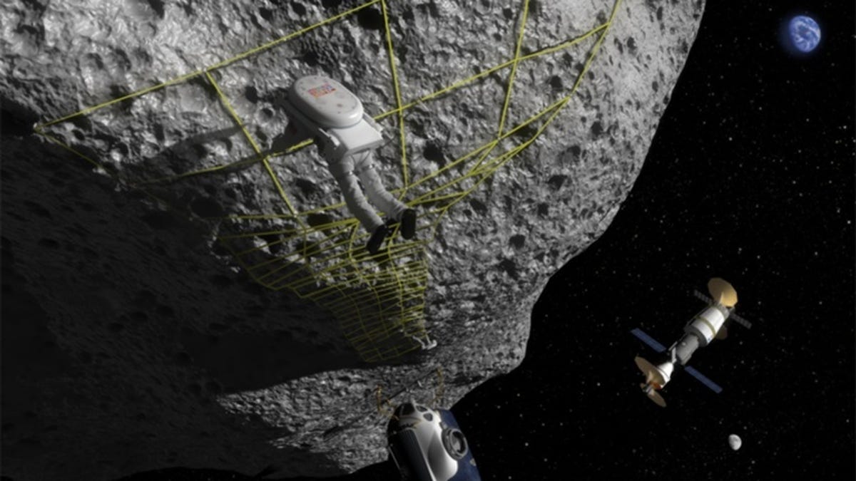In the budgets, about $78 million is set aside for a plan that involves sending a craft to rendezvous with what's described as a "small asteroid," and then moving the space rock into a stable orbit near the moon. Astronauts will later visit the asteroid and scoop up samples for study back on Earth.