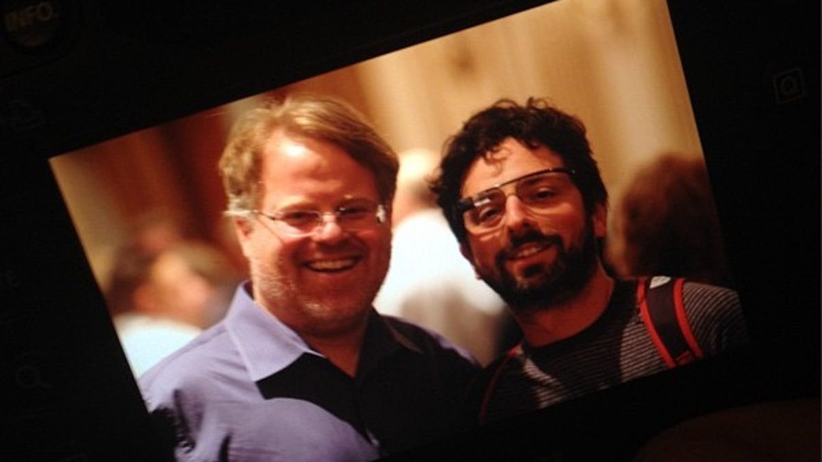 "The Google Glasses are real! Here is a set on @sergeybrinn cofounder of Googl @ Palace Hotel, San Francisco," Scoble wrote, including the picture in a Twitter post. "They look very light weight. Not much different than a regular set of glasses," he wrote in another tweet.
