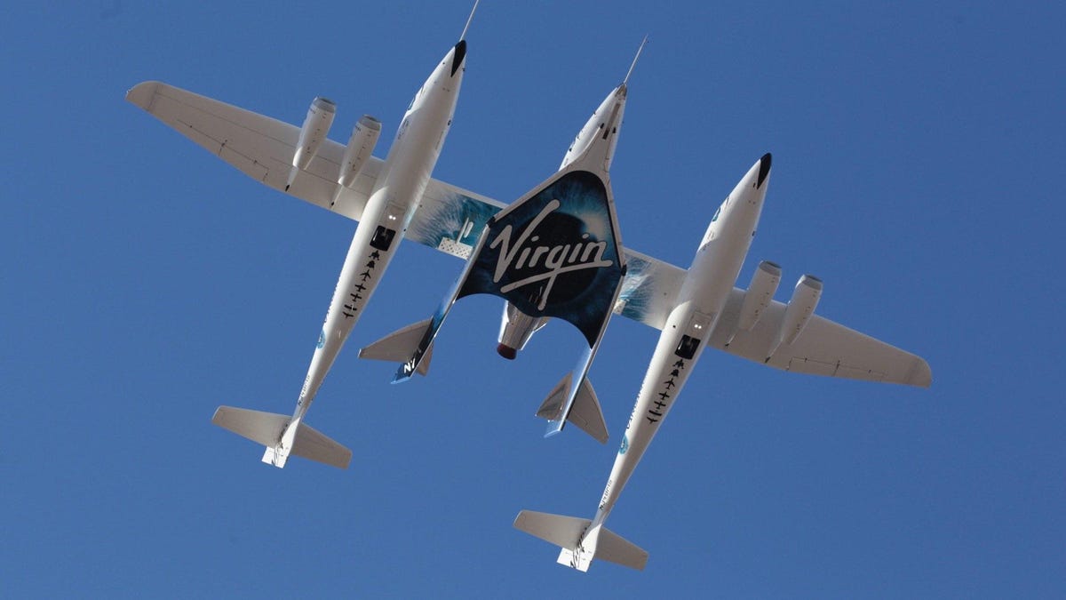 The rocket-powered space plane named VMS Unity took off in California's Mojave Desert attached to Virgin's jet-powered cargo craft, WhiteKnightTwo, before reaching a high-enough altitude to separate and fire its engine.