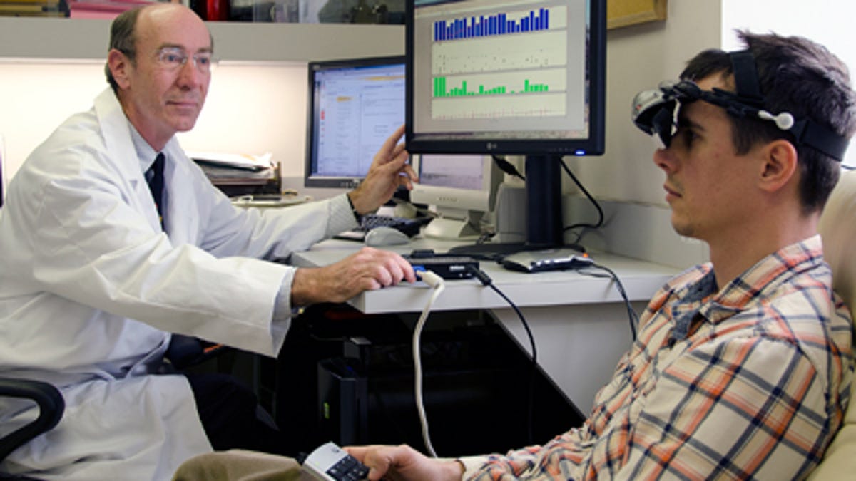 Researchers tested 18 adults with amblyopia, nine of whom played Tetris with the stronger eye patched and nine of whom played it dichoptically, using head-mounted video goggles that allowed one eye to see only the falling objects and the other to see only the ground objects. Two weeks later the group using both eyes showed dramatic improvement in the vision of the weaker eye and even in perception of 3D images, while the group with the patch showed only moderate improvement. Then, when the patch was removed, that group ultimately caught up with their goggle-playing forebears.