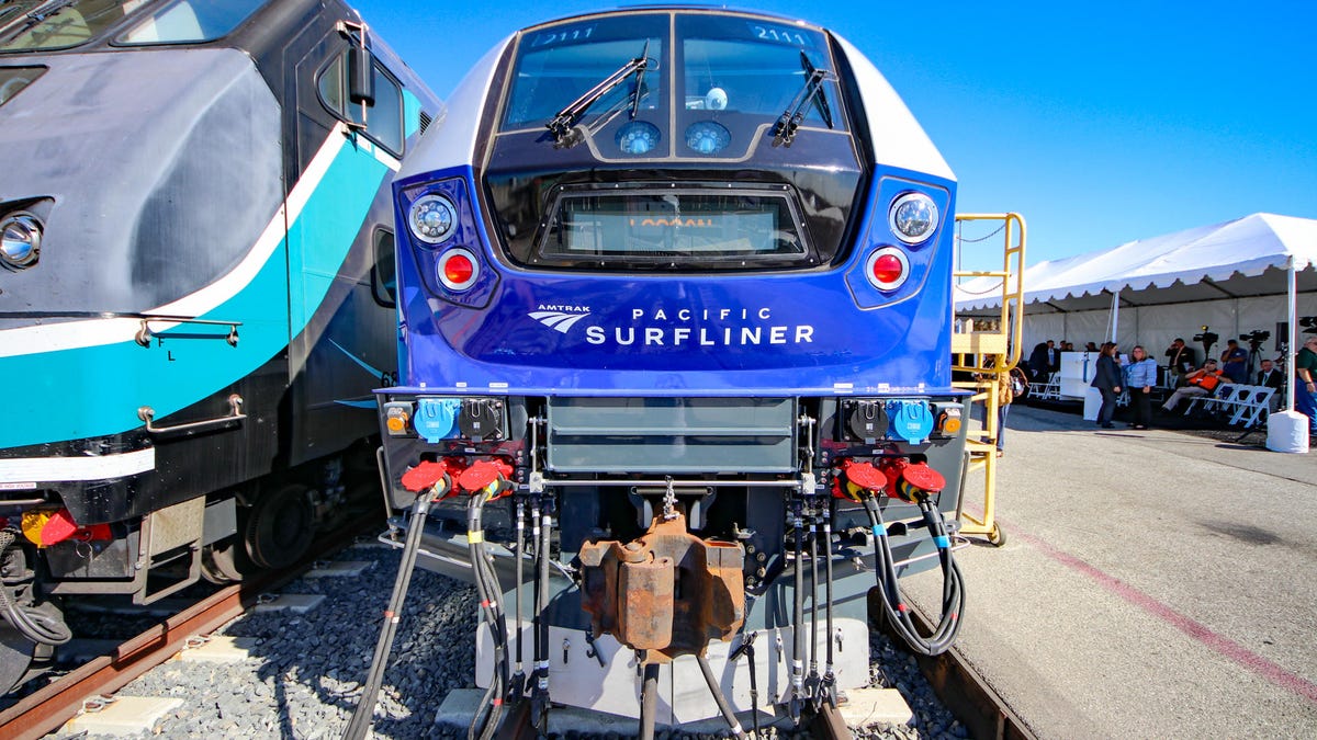 Built in California at a factory 80 percent powered by renewable energy, each of the 14 Surfliner Chargers will be owned by Caltrans, not Amtrak. They're the first passenger locomotives to pass the EPA's Tier IV emissions standards. Plus, according to Siemens, they're much quieter than the GE and EMD models they're replacing.