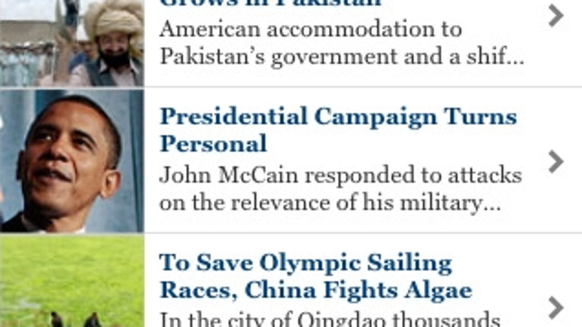 - NYTimes Read the latest news, business stories, editorials, and more. It's a little slow right now, probably due to huge amounts of traffic, but talk about an incredible app: the entire New York Times in the palm of your hand!
