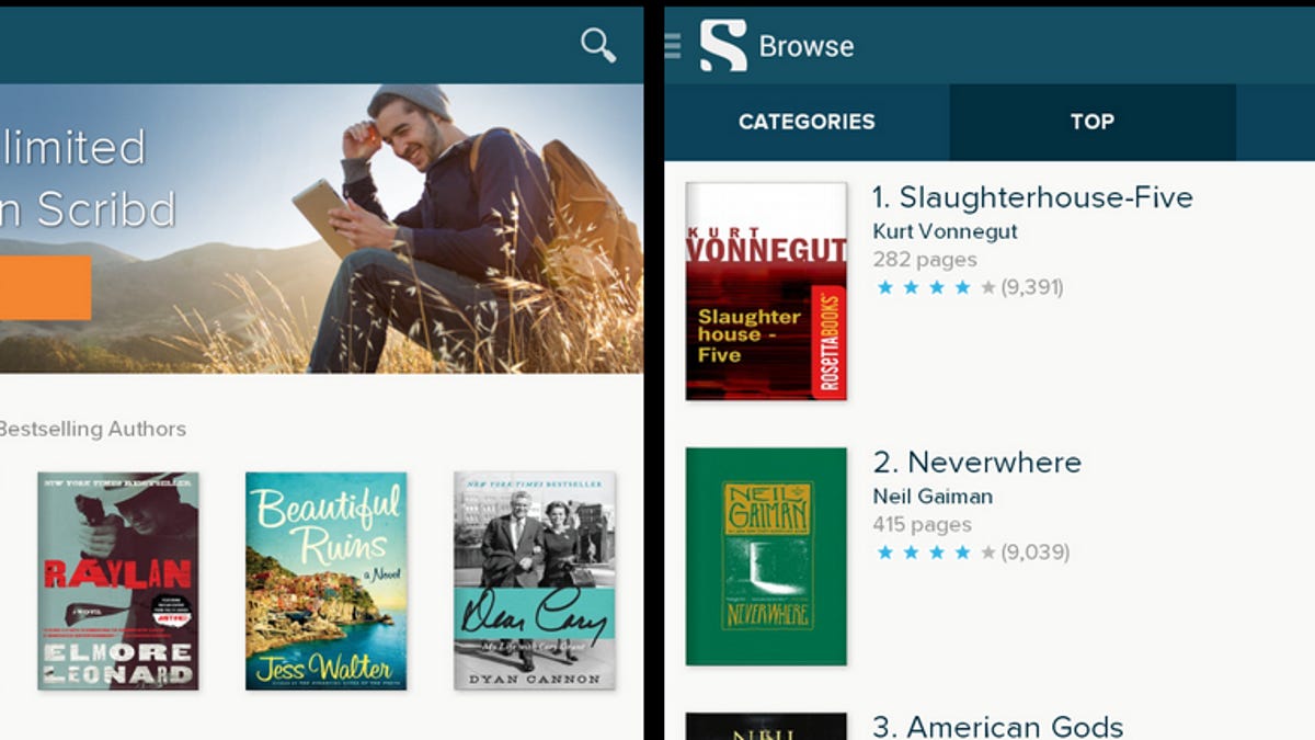 Like its Android and iOS apps, the Kindle Fire app allows Scribd's premium account holders to check out e-books from the company's library of "100,000 +" titles that make up the backbone of Scribd's fledgling e-book subscription service, which made its debut in October. At the same time, Scribd is updating its iOS and Android with new features, including more fonts, a night reading mode, and the ability to rate content within the app.