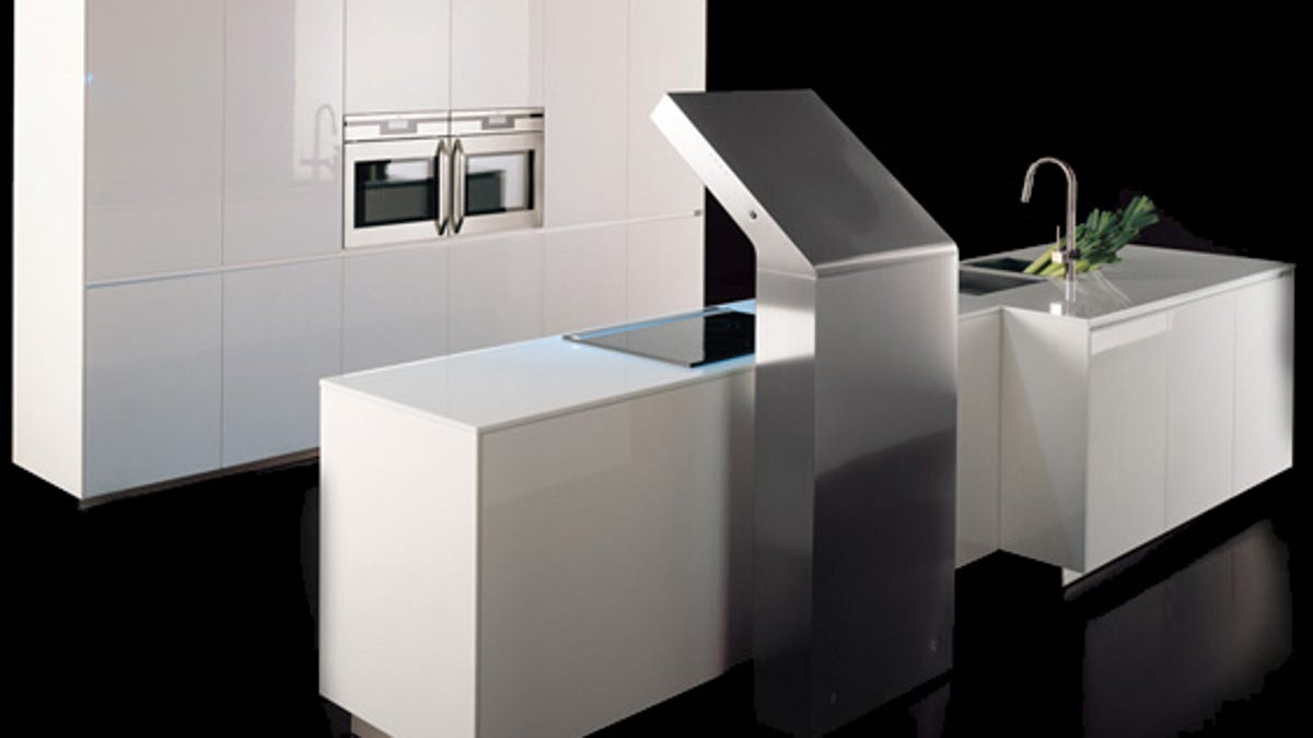 The L'evoluzione kitchen looks like it was made to fit right in with your iPod collection: its lines are simple, the colors are crisp and clean, and the glossy finish on the cabinets and countertops looks polished and sleek.