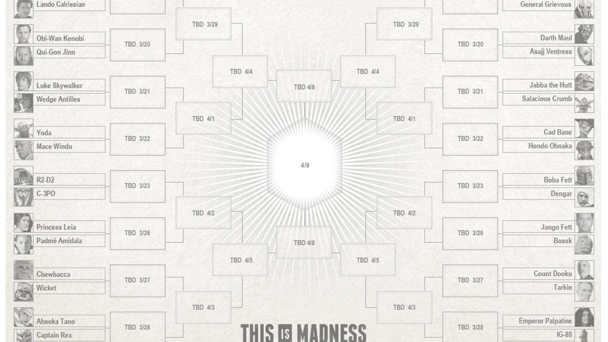 Today, Lucasfilm announced "This is Madness," its first-ever "Star Wars" NCAA basketball-style tournament, an effort to determine who is the world's favorite "Star Wars" character. Mashable was first to report the story.