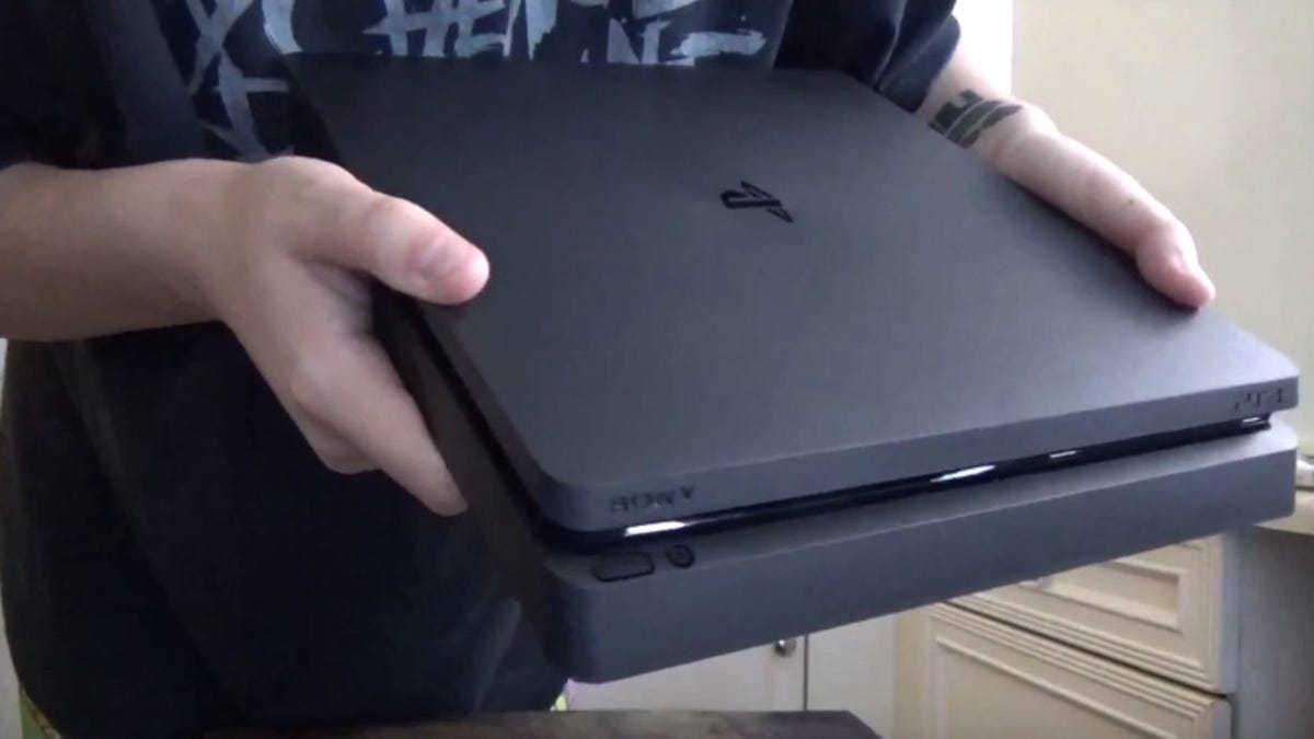 It sure does look like one of Sony's surprises has been spoiled: A slimmer PlayStation 4 with a slightly revised controller, an easier-to-replace hard drive and a way to directly connect that controller using a USB cable for increased responsiveness.