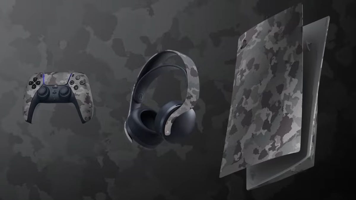 Sony will release a new PS5 color scheme in gray camouflage this fall, according to a PlayStation blog post Tuesday. The collection includes console covers for both disc and digital-only versions of the PlayStation 5, along with a new look for the DualSense controller and Pulse 3D wireless headset.Â