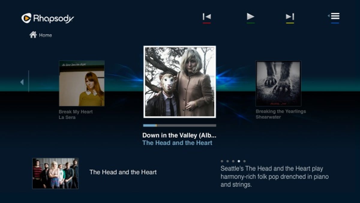 "Our goal is to be within arm's reach for our customers so they can enjoy anytime, anywhere access to the music that matters most to them. For many of our customers, the living room and the TV are the focal point for digital media consumption," said Paul Springer, Rhapsody's SVP of product and design.