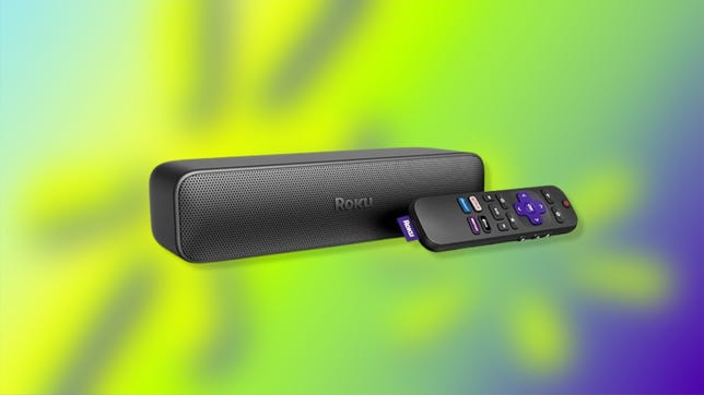 - Very compact mini sound bar with built-in 4K Roku video streamer