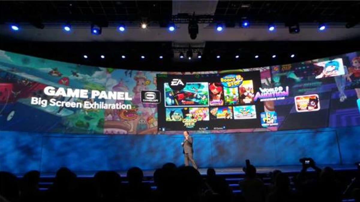 For home entertainment, Samsung highlighted its Smart Home service, which lets people use an app to control devices and home settings and access customer service. Tim Baxter, president of Samsung Electronics America, also highlighted the second-screen features of its TV Smart Control.