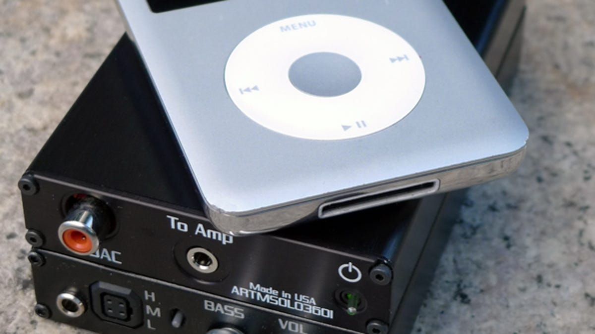 The AlgoRhythm Solo digital-to-analog converter has a special USB input, a 3.5mm analog output (that goes to the Rx-MK3-B), and a RCA digital output you can connect to a home DAC. The Rx-MK3B and AlgoRhythm Solo are made in the U.S.A. The amp's metal bass and volume control knobs are machined in Portland, Ore.; they're very cool!