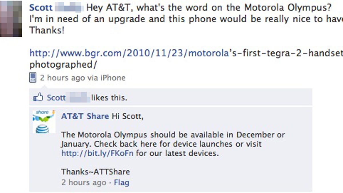 An AT&T Facebook account confirmed the existence of an upcoming Motorola handset yesterday, outing the Olympus for all to see.