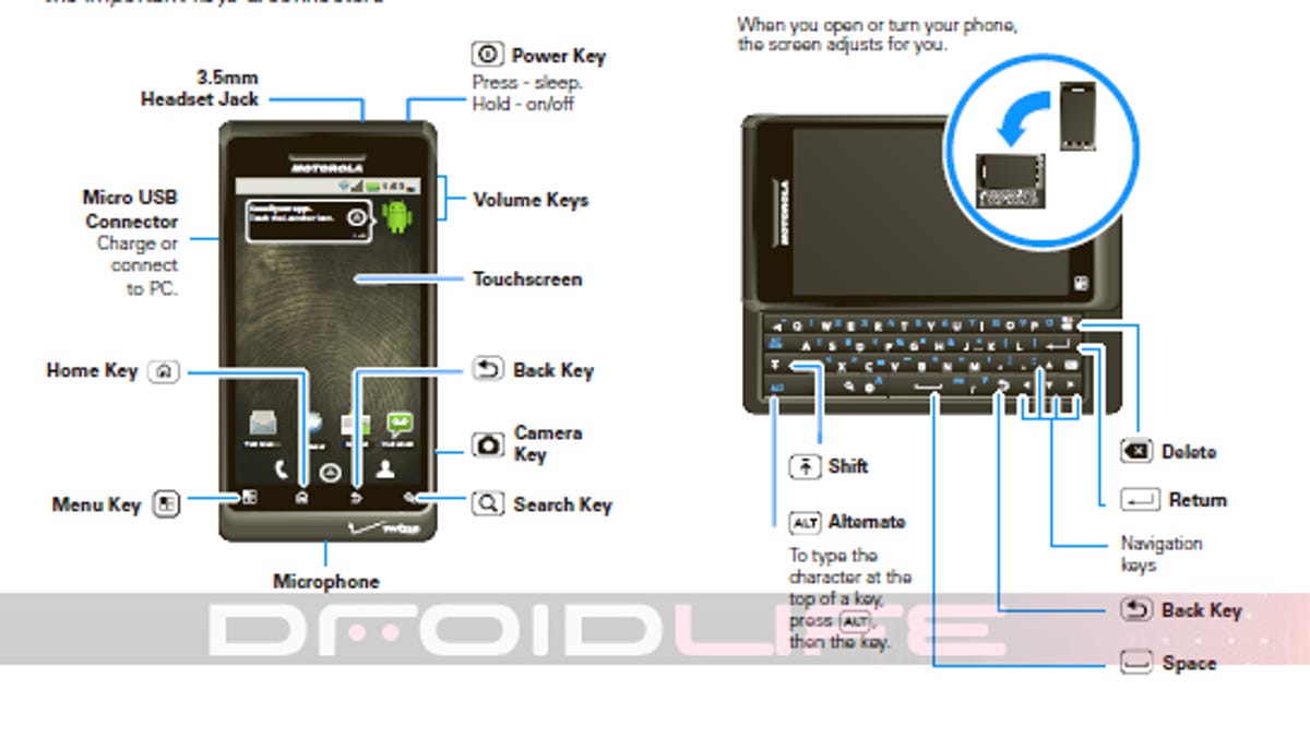 Other details uncovered by the manual include both Swype and multitouch soft keyboards. You may recall that the recently released Droid X features a multitouch keyboard as well. Finally, an image of the home screen confirms that Motorola has opted to load the newer, less-intrusive MotoBlur user interface on the Droid 2.