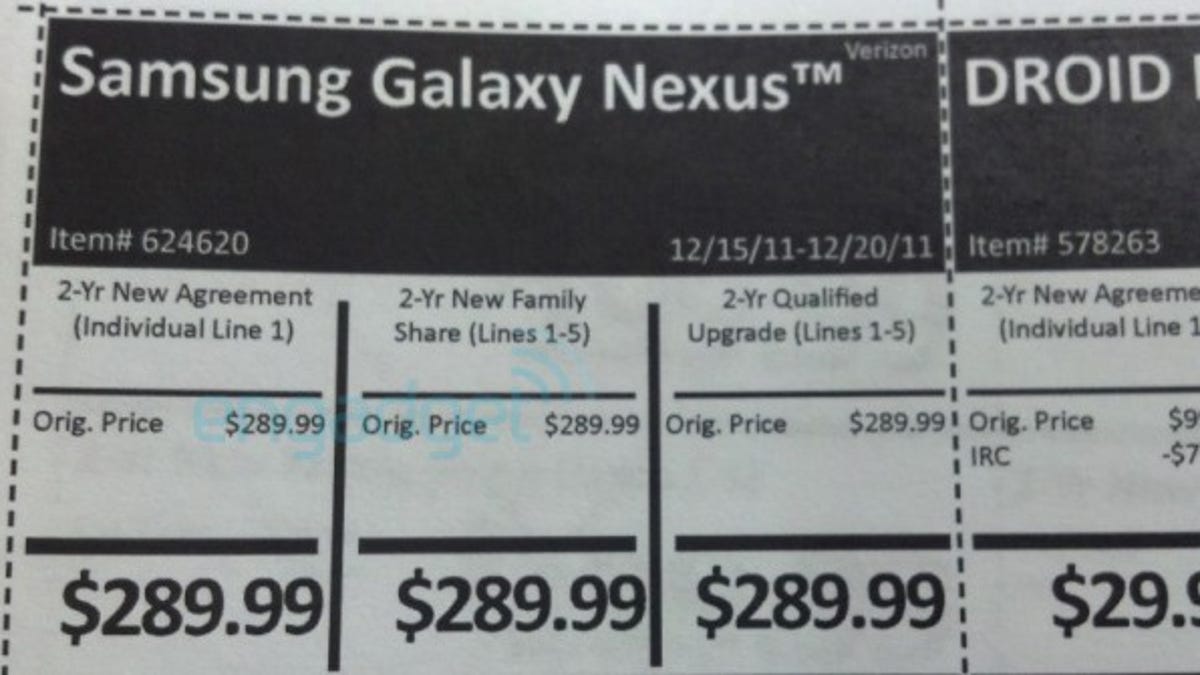 According to a leaked document, the Ice Cream Sandwich-powered smartphone will be on sale come December 15 with a two-year service agreement and a price of $289.99. This is not the first time we've seen these reports, as other outlets have received similar information over the past few weeks.