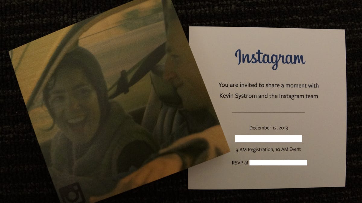 The package, wrapped with brown paper and a white ribbon, contained a wooden block, 4 inches long and wide and 1.75 inches thick, covered with a printed Instagram shot and a slot in the back so it can be hung on the wall. The included note invited the press to "share a moment with Kevin Systrom and the Instagram team." The event will kick off at 10 a.m. on December 12 in Midtown Manhattan.