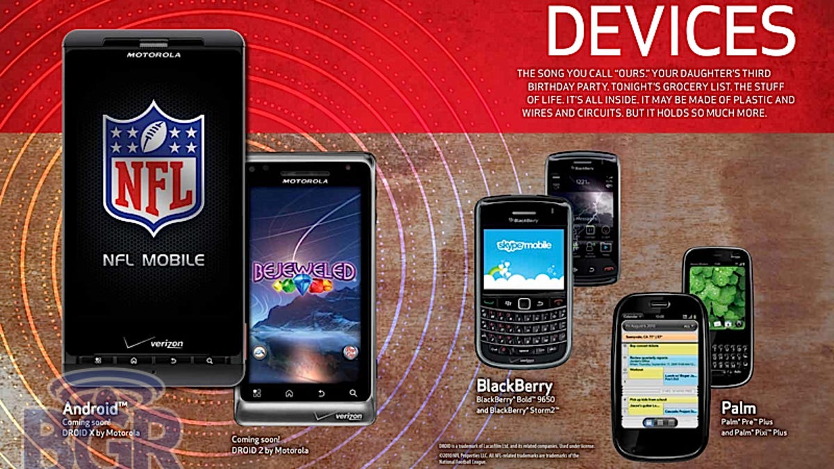 Listed as "coming soon," the Droid 2 is found to be sitting front and center on the inside of the catalog, next to the Droid X. Looking through the pages, we can see that the handset has an 8GB memory card preloaded and comes with a 1GHz processor and 5-megapixel camera. Other features include 512MB RAM, a more spacious slideout QWERTY keyboard, and 3G Mobile Hotspot capability.