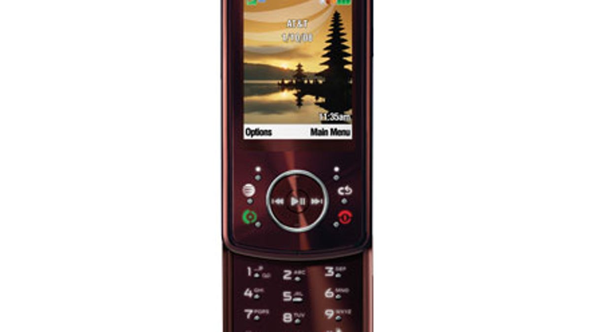 Though Motorola has retired the "Rizr" name, the trim Z9 is very much a slider phone. It sports the same mahogany color as AT&T's Motorola Razr2 V9, and its navigation keys and keypad buttons have a spacious design. The Z9 also has a 262,000-color display and its side-mounted volume buttons offer Haptics tactile feedback.