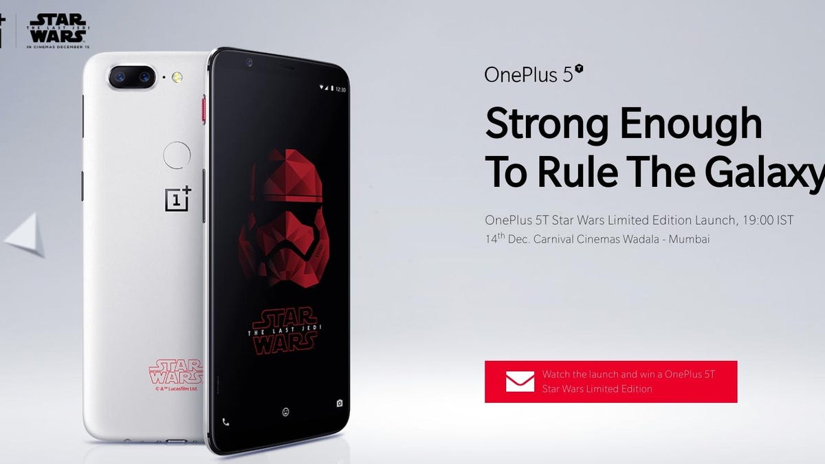 Put down that lightsaber young Jedi, the OnePlus 5T Star Wars Limited Edition arrives planetwide on December 14. According to the handset maker, it will unveil a specially branded version in Mumbai India. The OnePlus timed the official launch of the phone to the film release of Star Wars: The Last Jedi.Â