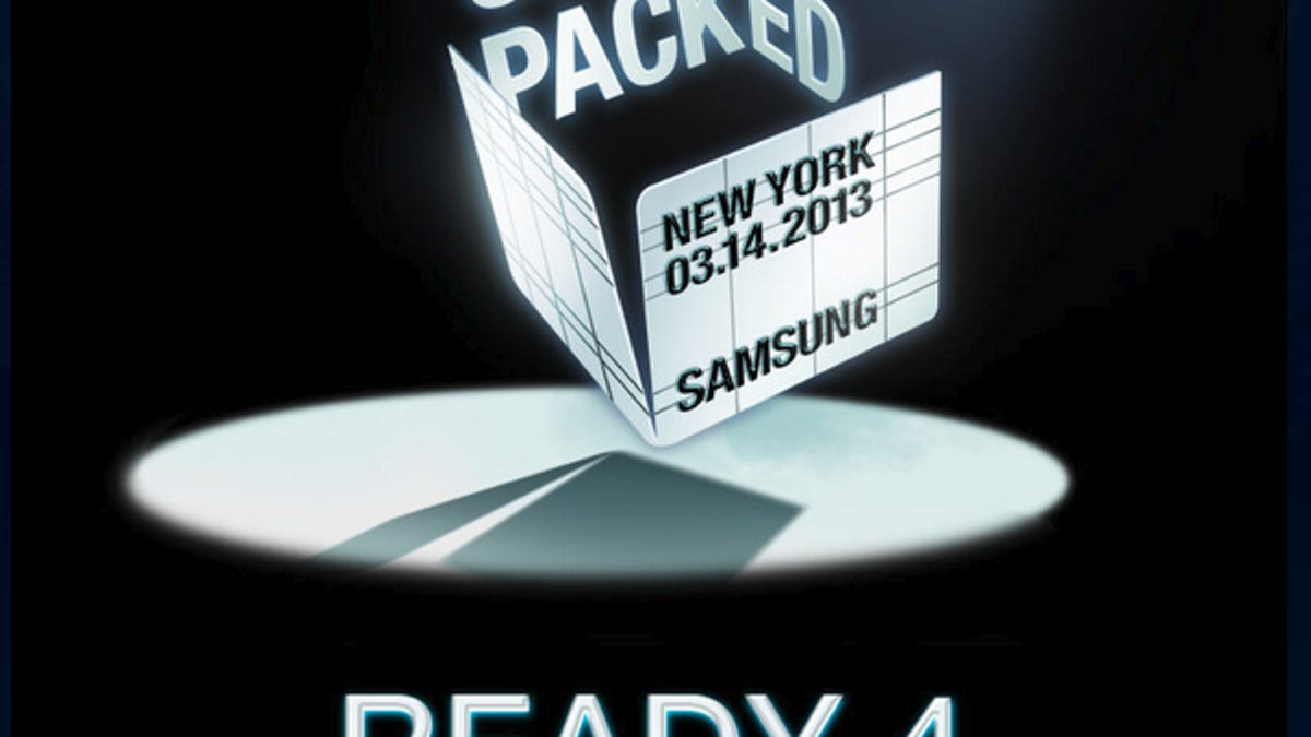 The news was tweeted by Samsung this morning via an invitation announcing the event, dubbed "Samsung Unpacked 2013 Episode 1." The tweet says Samsung wants people to "come and meet the next Galaxy," and further teases the new device with the numeral 4 in the phrase "Ready 4 the show." The current version of the company's signature smartphone is, of course, the Galaxy S3.