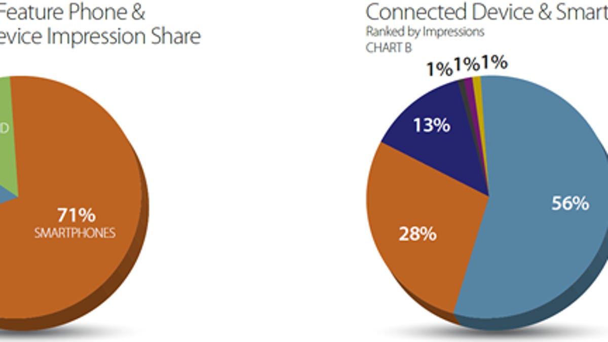 Though it lost the smartphone OS crown to Android, Apple is still tops among mobile device makers. Apple devices altogether won 23.5 percent of all ad impressions last month, giving the company the lead among the top 15 manufacturers. The iPhone itself was the most popular device on the top 20 list of mobile phones with a 12.5 percent share.