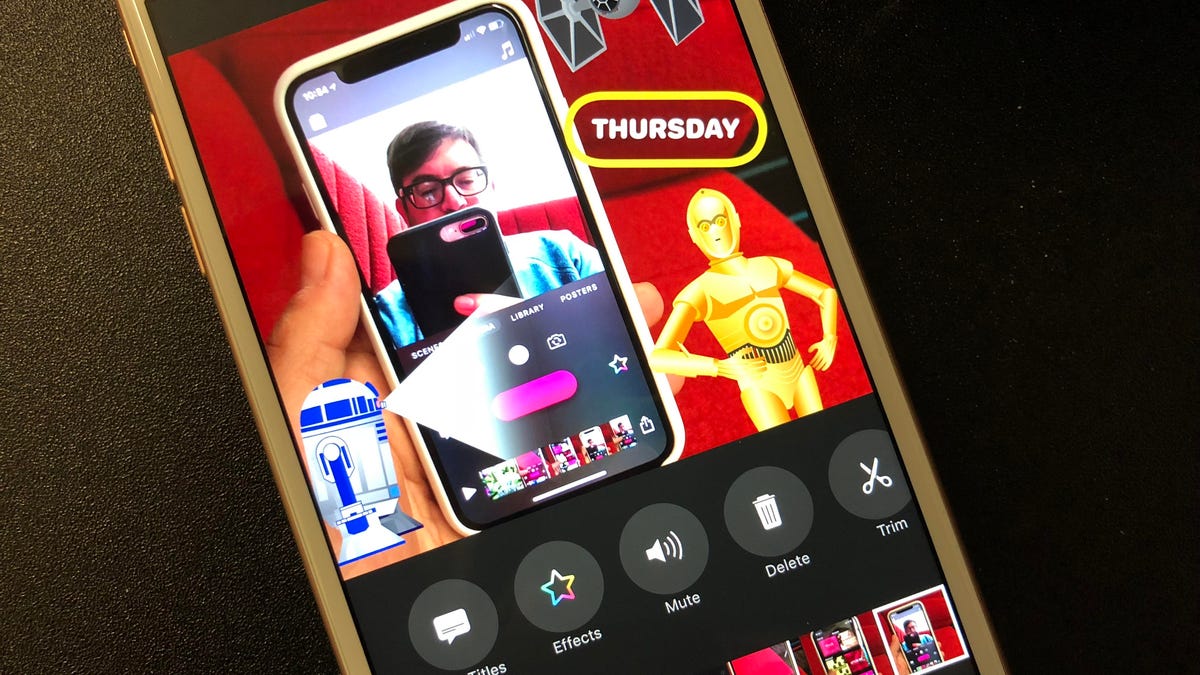 There are also a bunch of new video filters, stickers, expanded emoji access, and impressive (and free) added soundtracks: Mark Mothersbaugh fans will be happy to know he's got a handful of tracks on tap. Disney has added a bunch of Star Wars stickers and title effects, too.