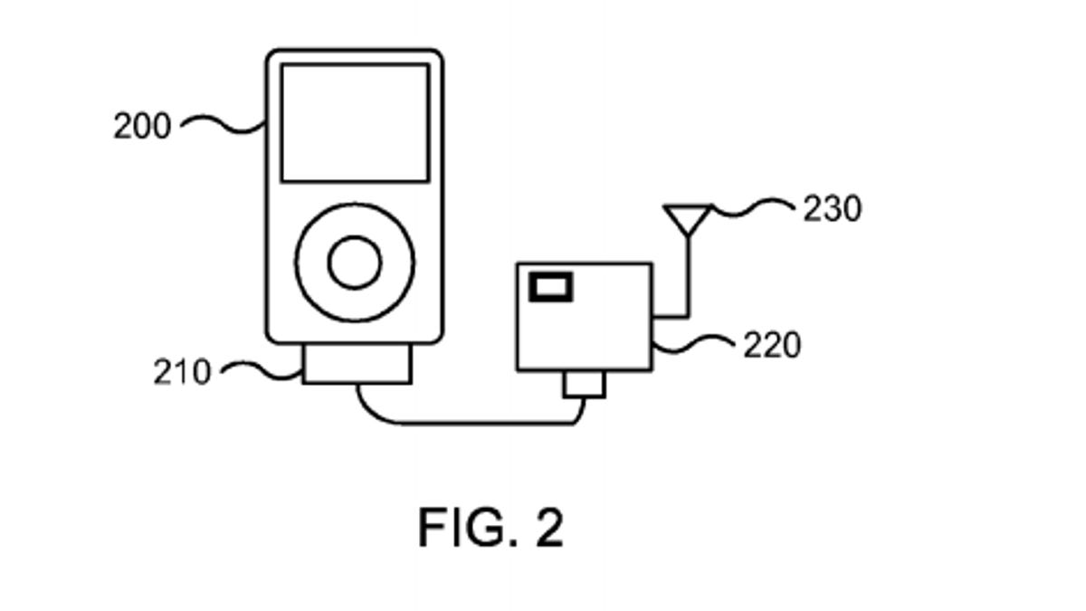 Diagrams in the patent envision three possible media players under the scope of the invention described in the patent, one that looks like an iPod, another that looks like an iPad, and a third that looks like an iPod with an integrated receiver.
