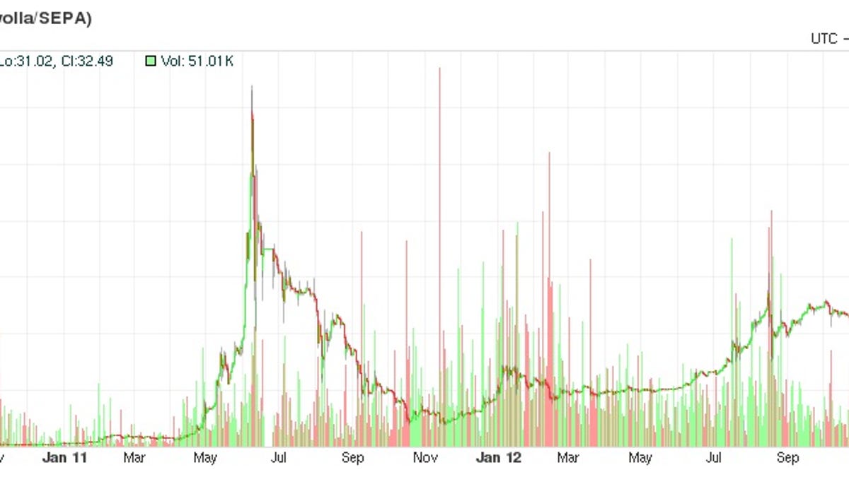 The currency has experienced a rollercoaster ride in the past two years, setting its previous record of $31.90 in June 2011 before plummeting to $2 later that same year. Its exchange rate began to improve in mid-November when the popular blogging platform WordPress announced it would begin accepting Bitcoin payment for upgrades such as custom designs and ad-free presentations.