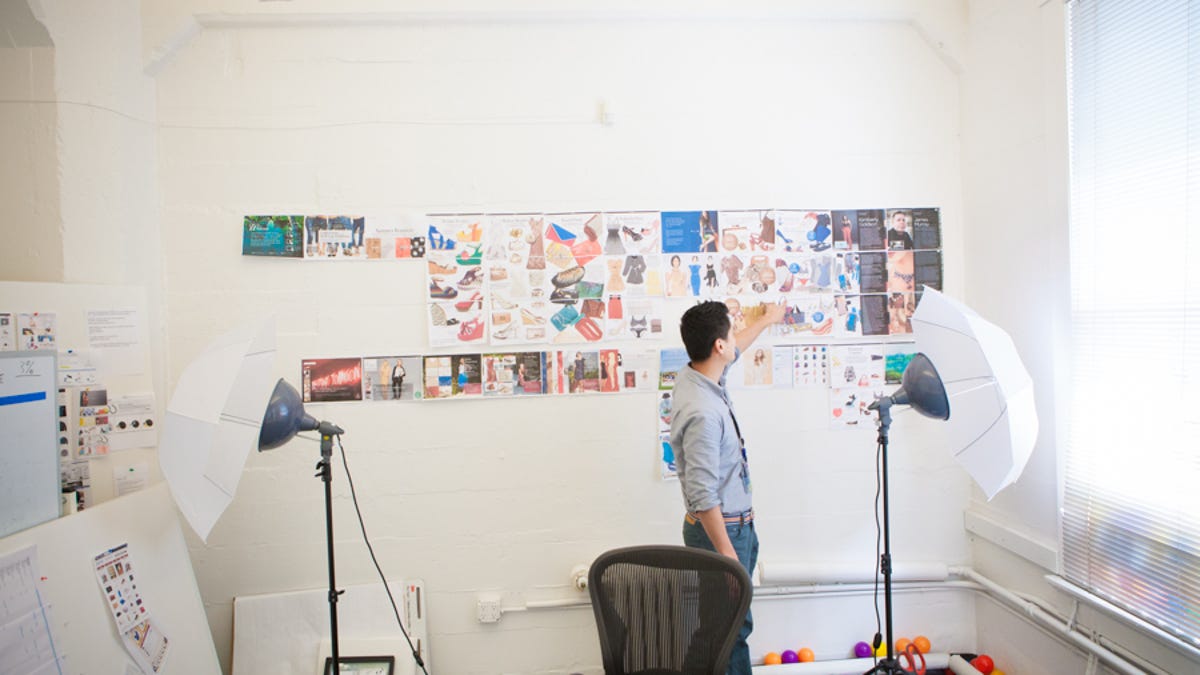 "People still tend to think about Zappos as shoes. Our business was built on shoes, but we're really trying to push apparel," Young said after showing off the Labs' inspiration room, the walls of which are covered with fashion-shoot photos of clothes, accessories, and, of course, shoes. The collage projects the image Zappos wants its customers to have: Zappos as a place to go for fashion not only convenience. Going beyond shoe sales has been a longtime goal for the company. It's tried to build up its fashion presence by participating in New York Fashion Week and striking an exclusive deal with Betsy Johnson for its clothing line.