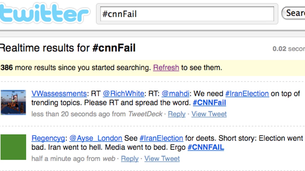 As the Iranian election aftermath unfolded in Tehran--thousands of demonstrators took to the streets to express their anger at perceived electoral irregularities--an unexpected hashtag began to explode through the Twitterverse: "CNNFail."