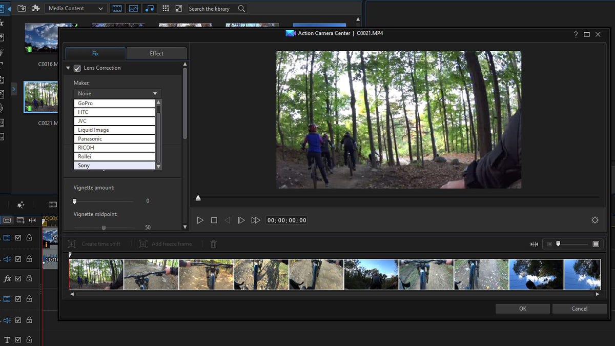 Also, while fish-eye distortion is pretty standard from action cams, not everyone is a fan of how it looks. ActionDirector has preset profiles for a wide variety of cameras for instant distortion correction. Similarly, you can digitally stabilize your movies with a single click and make color and white balance corrections with specific fixes for snow and underwater.
